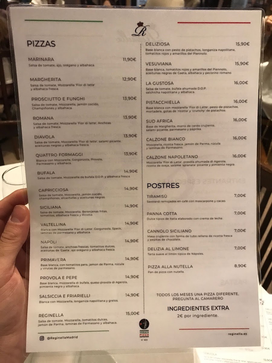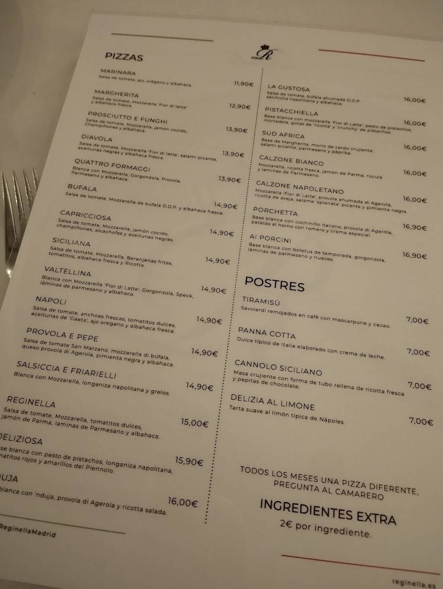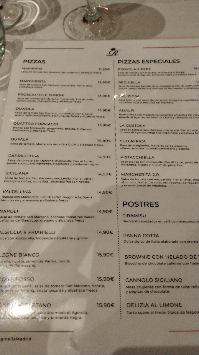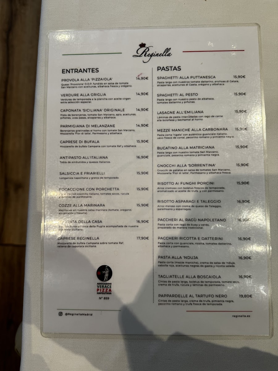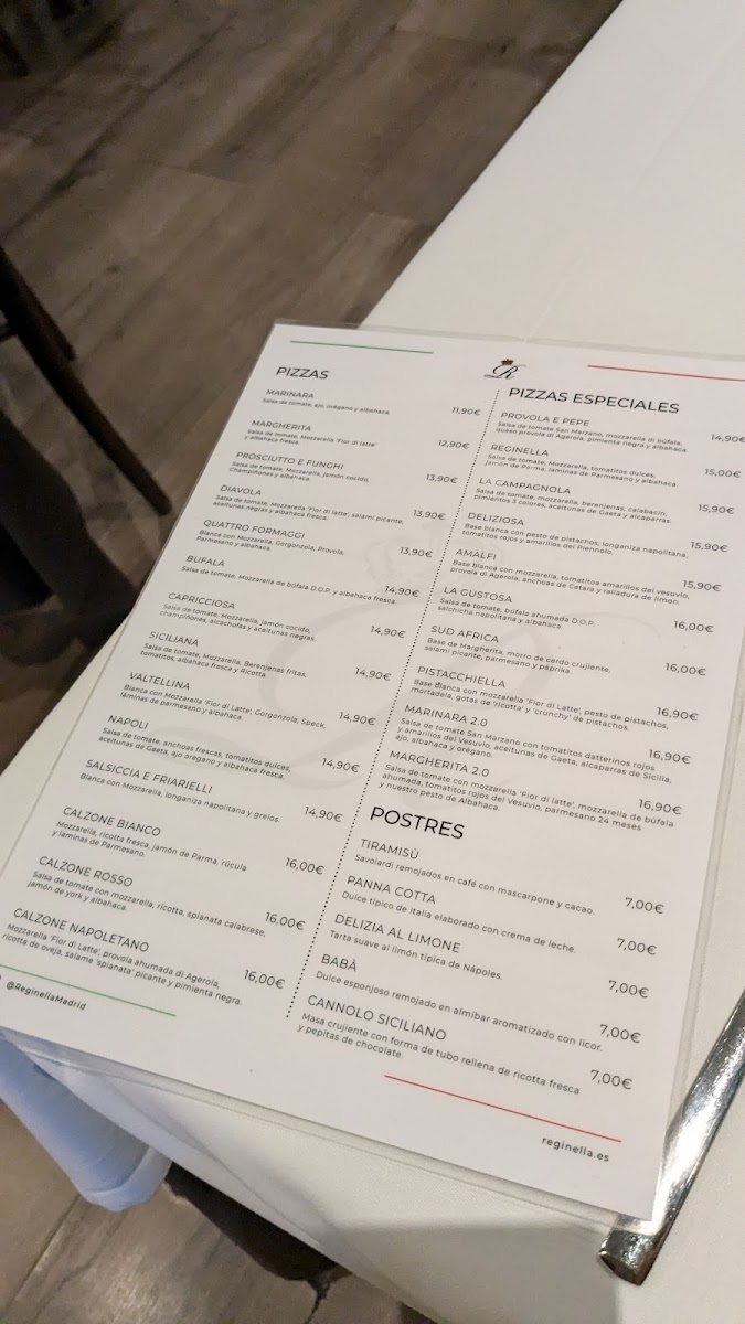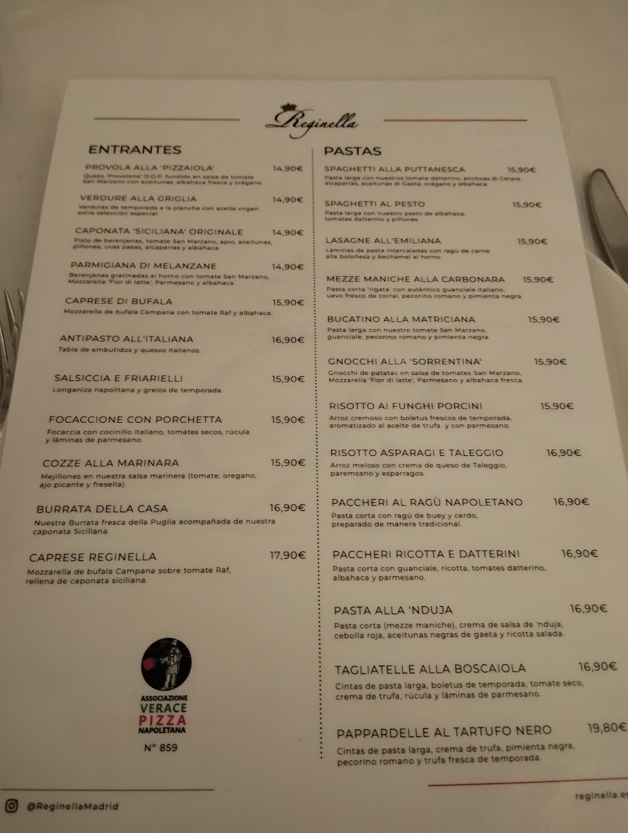 Welcome to Ristorante Reginella - Chamberí, an enchanting Italian haven nestled in the heart of Madrid's Chamberí district. Here, every dish is a celebration of authentic flavors and craftsmanship. The menu features a delightful array of antipasti, including the luxurious Caprese Di Burrata and the vibrant Parmigiana Di Melanzane, which have garnered rave reviews for their fresh ingredients and traditional preparation. For pizza enthusiasts, the Nuestros Combos offers a fantastic way to enjoy two delicious Neapolitan pizzas, perfect for sharing.